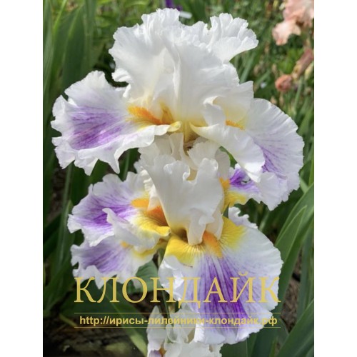 F - БЕЛЫЕ, С ЯРКО-ЖЕЛТЫМИ ПЛЕЧИКАМИ, С ФИОЛЕТОВЫМ БРЫЗГАМИ И НЕСКОЛЬКИМИ ЛИНИЯМИ В ЦЕНТРЕ.