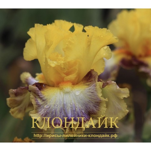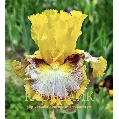 F - ДЫМЧАТО-БЕЛЫЕ, ПЛЕЧИКИ ВИННО-БОРДОВЫЕ, ЯРКО-ЖЕЛТЫЕ ОСНОВАНИЯ, ДВОЙНАЯ КАЙМА - ЦВЕТА СТАНДАРТОВ И ПЛЕЧИКОВ.