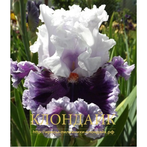 F - СВЕКОЛЬНО-ФИОЛЕТОВЫЕ, ШИРОКАЯ КАЙМА ЦВЕТА СТАНДАРТОВ, БЕЛЫЕ ЛУЧИКИ ИДУТ ОТ БОРОДКИ.