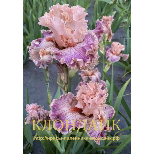 F - ЦВЕТА СТАНДАРТОВ, С ВЫРАЖЕННЫМИ ПУРПУРНО-ФИОЛЕТОВЫМИ ЖИЛКАМИ, УЗКАЯ ЛОСОСЕВО-РОЗОВАЯ КРОМКА.