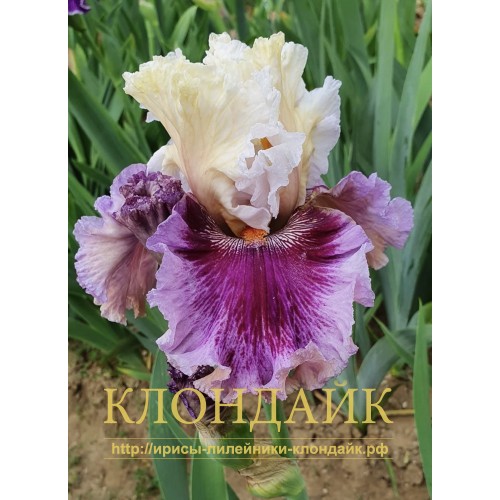F - НАСЫЩЕННО-КРАСНО-ФИОЛЕТОВЫЕ, С ШИРОКОЙ ПУРПУРНОЙ КАЙМОЙ И БЕЛЫМИ БРЫЗГАМИ ОКОЛО БОРОДКИ.